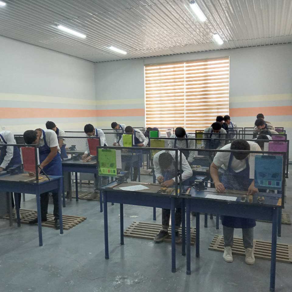 Maxsus jihozlangan ustaxonalarimizda talabalar nazariy bilimlarini amaliyotda sinab ko‘rib, texnik ko‘nikmalarni shakllantiradilar.