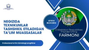 O‘zbekiston Respublikasi Prezidentining 2024-yil 16-oktyabrdagi “Kasbiy ta’limda malakali kadrlar tayyorlash tizimini yanada takomillashtirish va xalqaro ta’lim dasturlarini joriy qilish chora-tadbirlari to‘g‘risida” gi 158-sonli Farmoniga asosan negizida texnikumlar tashkil etiladigan kasbiy ta’lim tashkilotlari tasdiqlandi.